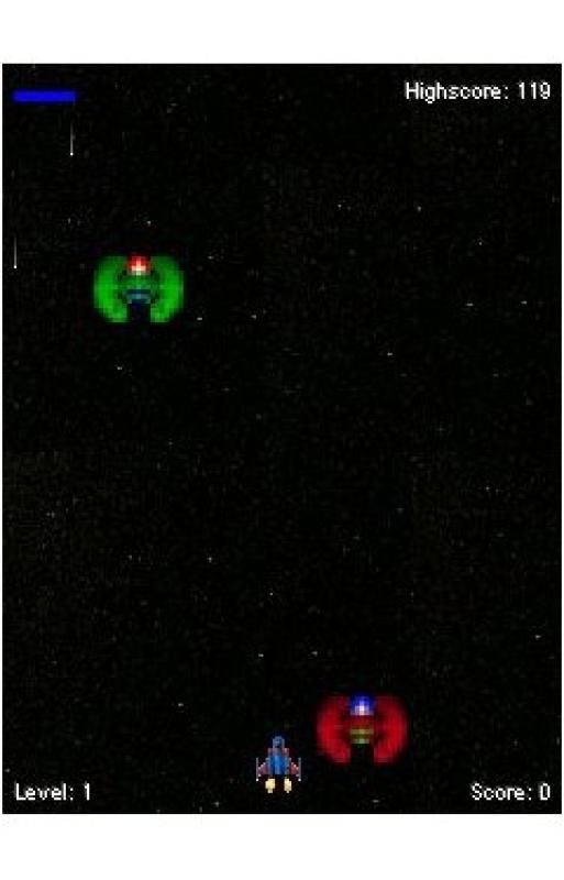 Destroy all of the alien ships in the black star space room. Can you win and survive?